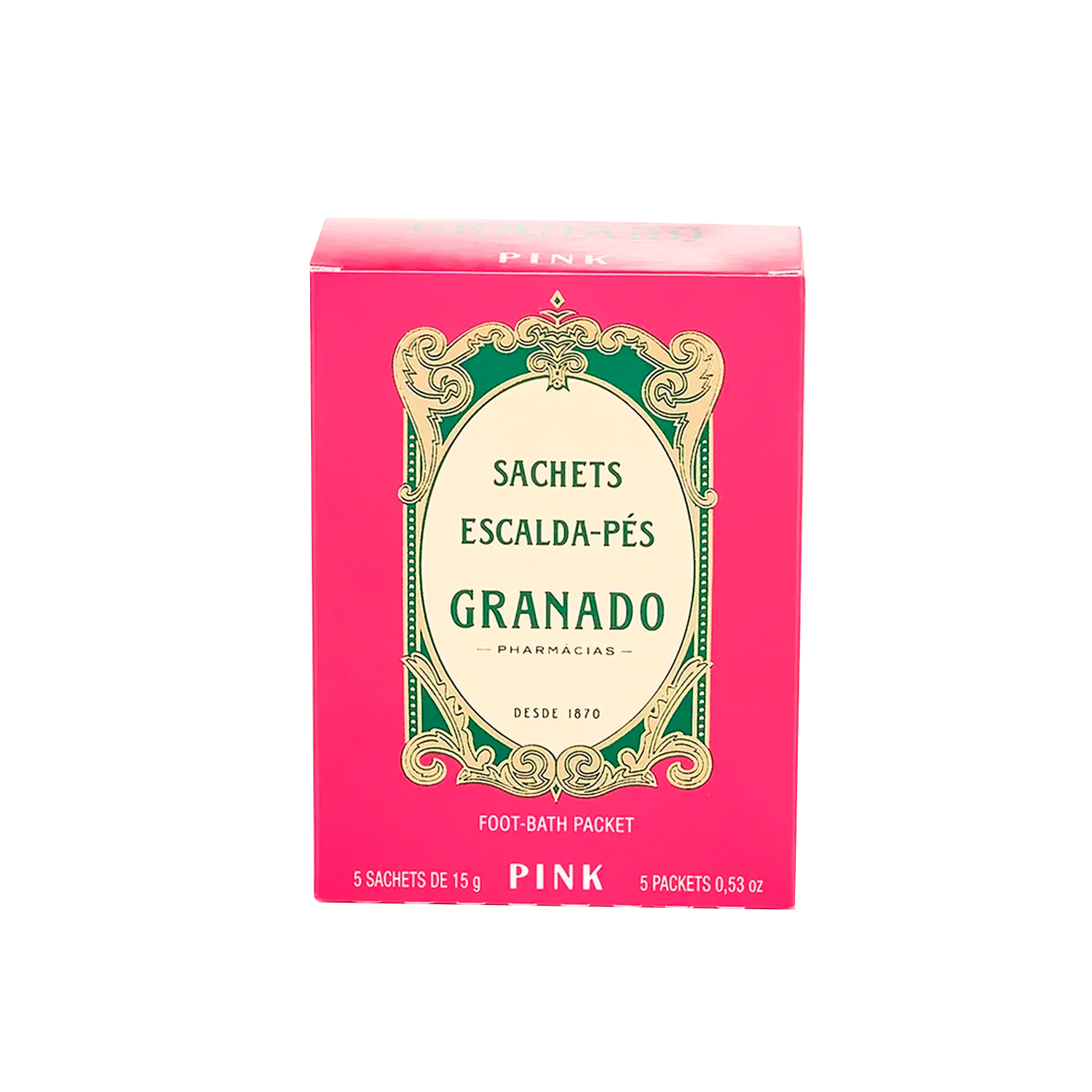 01 Caixa com 05 Sachets Escalda Pés Pink Granado 15g cada.